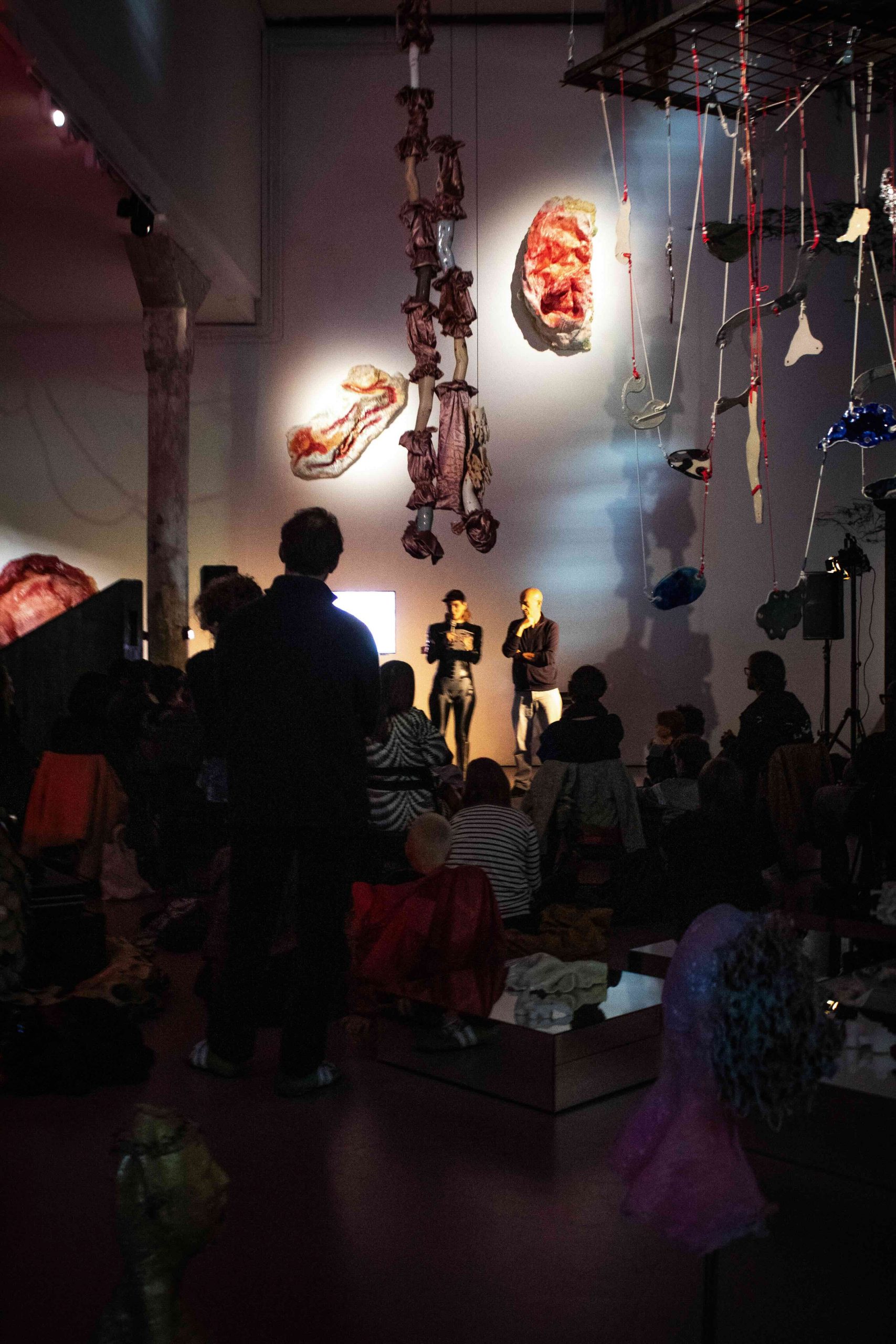 Mette Sterre is een beeldend kunstenaar die de grenzen en het transformatieve vermogen van het lichaam onderzoekt. Haar werk laat zich niet gemakkelijk categoriseren en brengt performance, sculptuur, lichaamsmaskers en digitale technologie samen in immersieve, buitenaardse omgevingen die de grens verkennen tussen het organische en het kunstmatige. Door haar werk binnen te treden, worden we ondergedompeld in de materialisatie van haar denkprocessen: een zintuiglijke en belichaamde ervaring.