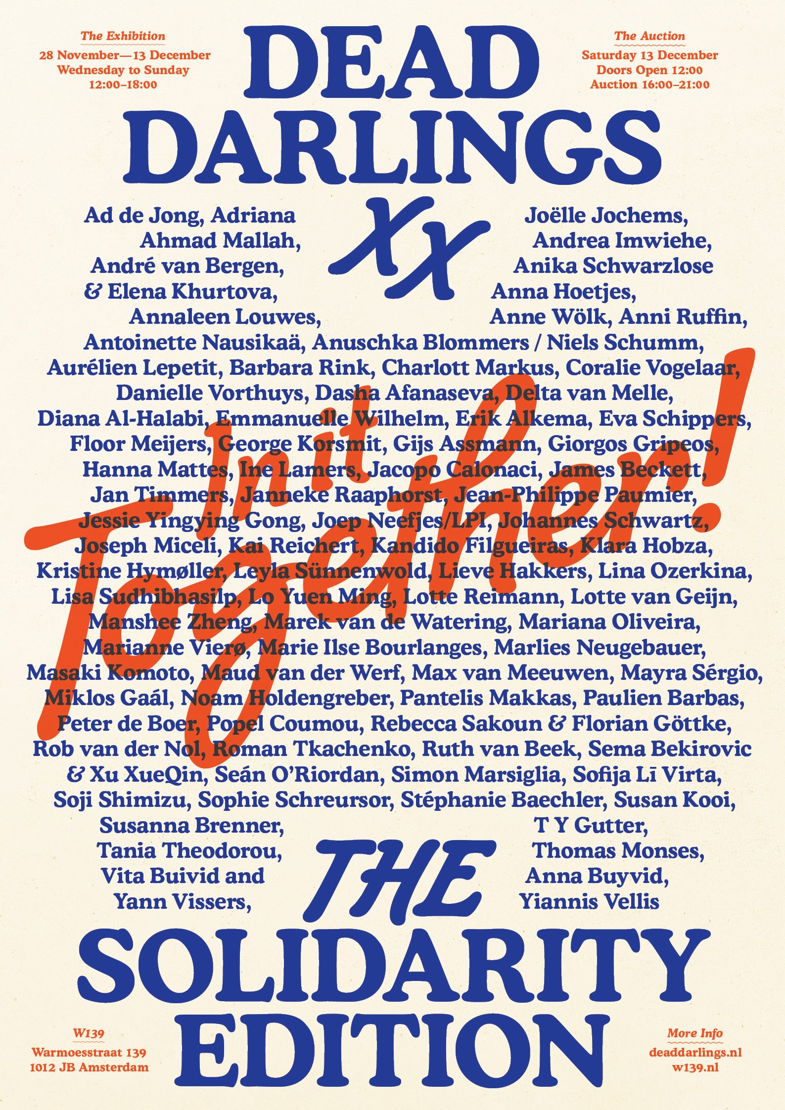 Om deze mijlpaal te vieren, zal er niet alleen een volledige veilingdag zijn met een tentoonstelling en veiling van maximaal 80 geselecteerde kunstwerken –afgesloten met een old-school W139-feest. In de weken voorafgaand aan de veiling zijn er ook paneldiscussies, t-shirt-zeefdruksessies en een grote archieftentoonstelling die 20 jaar Dead Darlings in beeld brengt.