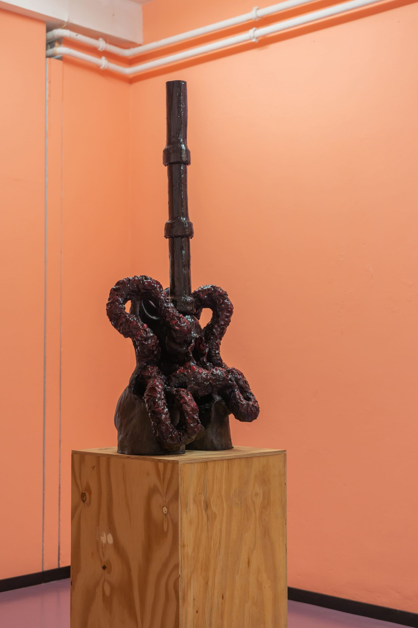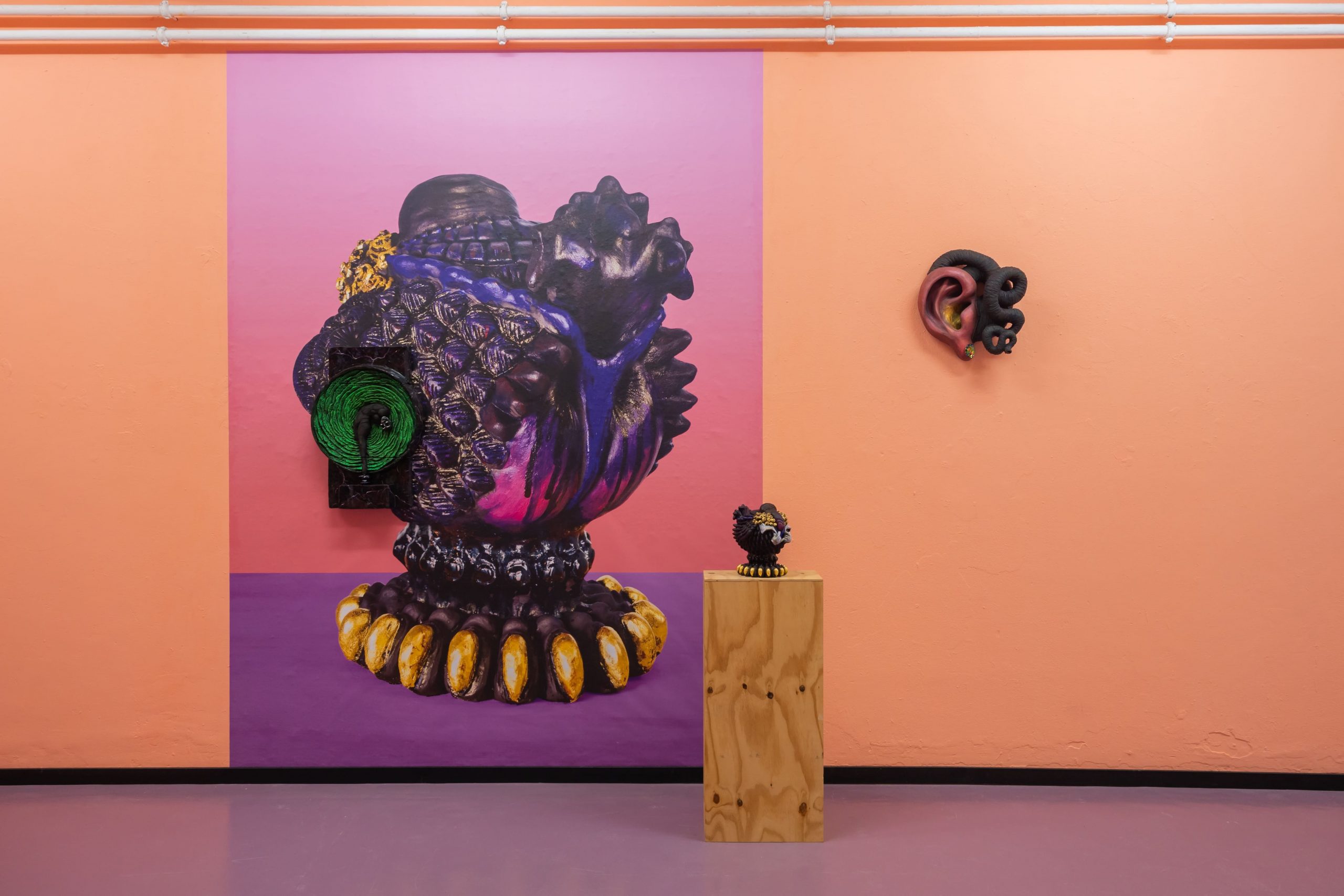 Ervaar een sfeer van alles wat vlezig, glanzend en moreel dubbelzinnig is. Een overvloed aan kleuren, animatronics en visuele prikkels die thema’s als spijsvertering, lichamelijke verlangens, erotische groteske onzin, seks als de oorsprong van macht en de commodificatie van genot onderzoeken. Minimale maar grandioze gebaren dagen de monumentaliteit van de backspace van W139 uit met zintuiglijk, gedetailleerd werk; evenals het weghalen van witheid om verborgen sporen van eerdere tentoonstellingen te onthullen.