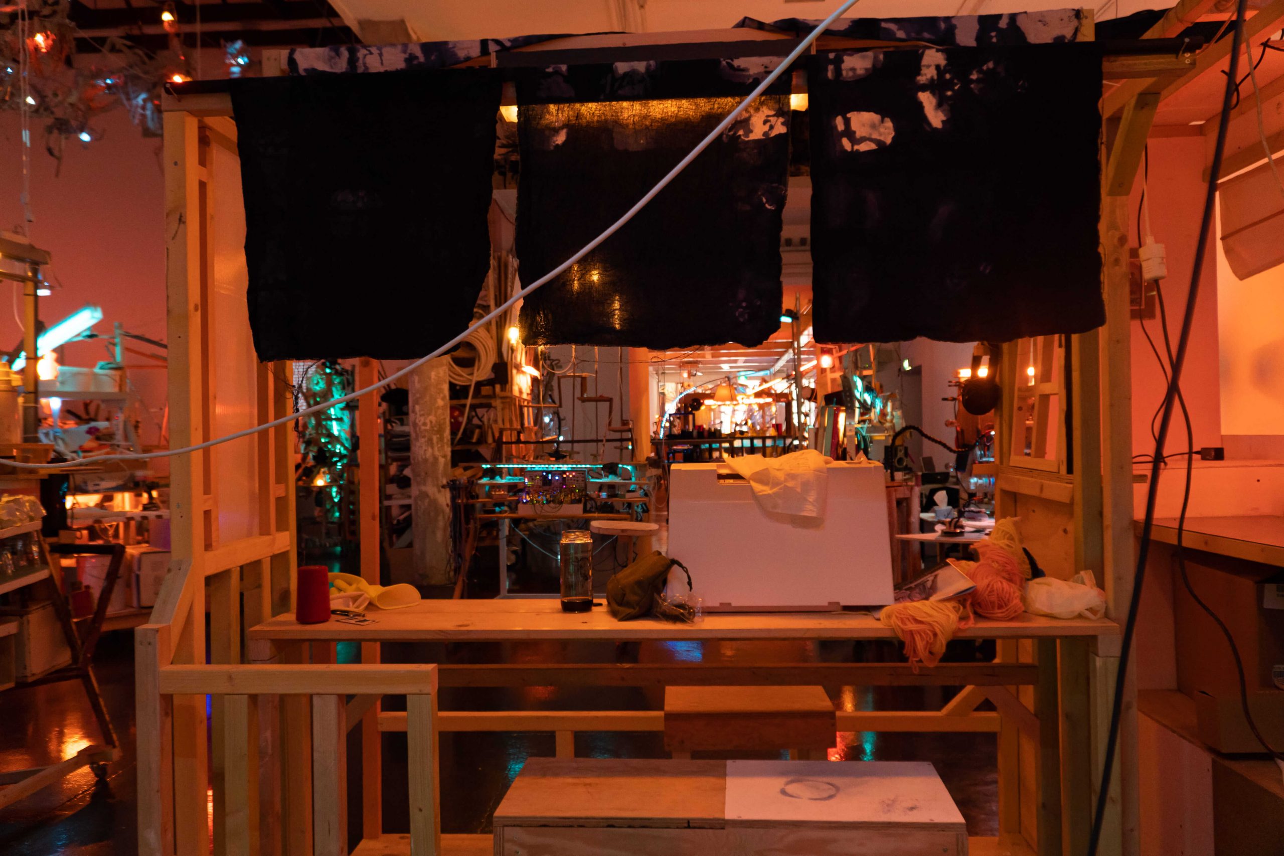 Tijdens de residentie bleef de tentoonstellingsruimte voortdurend in verandering. De inrichting werd eerst elke drie weken en later wekelijks aangepast, als reactie op doorlopende artistieke processen en het gedeelde gebruik van de ruimte. Deze voortdurende transformatie stimuleerde kruisbestuiving tussen praktijken en leidde tot nieuwe gesprekken, samenwerkingen en verbindingen.