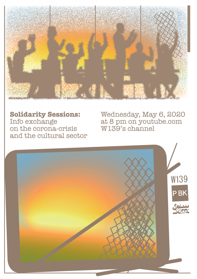 Deze bijeenkomst wordt georganiseerd door Platform BK, de Salwa Foundation en W139, en is een initiatief van Margarita Osipian. W139 host het evenement. Een groep makers is daar momenteel aan het werk en heeft een virtuele omgeving opgezet waar we in de tentoonstelling market samen kunnen komen. We hopen in deze opzet ruimte te bieden aan het openlijk delen van vragen, zorgen en angsten en zo samen in een sterke solidariteit te staan. De sprekers zijn o.a. Jeremy Bierbach van Franssen Advocaten, gespecialiseerd in vreemdelingenrecht, Koen Bartijn en Sepp Eckenhaussen van Platform BK, en Peter van den Bunder van de Kunstenbond. De sprekende cultureel werkers zijn o.a. Eshan Fardjadniya, Alina Lupu, Julia Sokolnicka en Yara Said. Meer sprekers worden nog bevestigd.